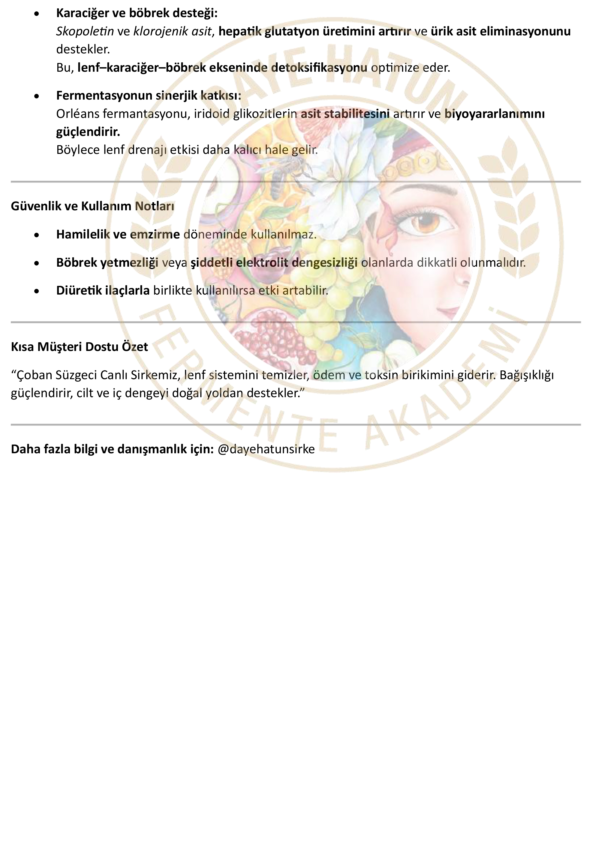 • "Daye Hatun" sirkelerini soğuk kullanmaya özen gösteriniz.