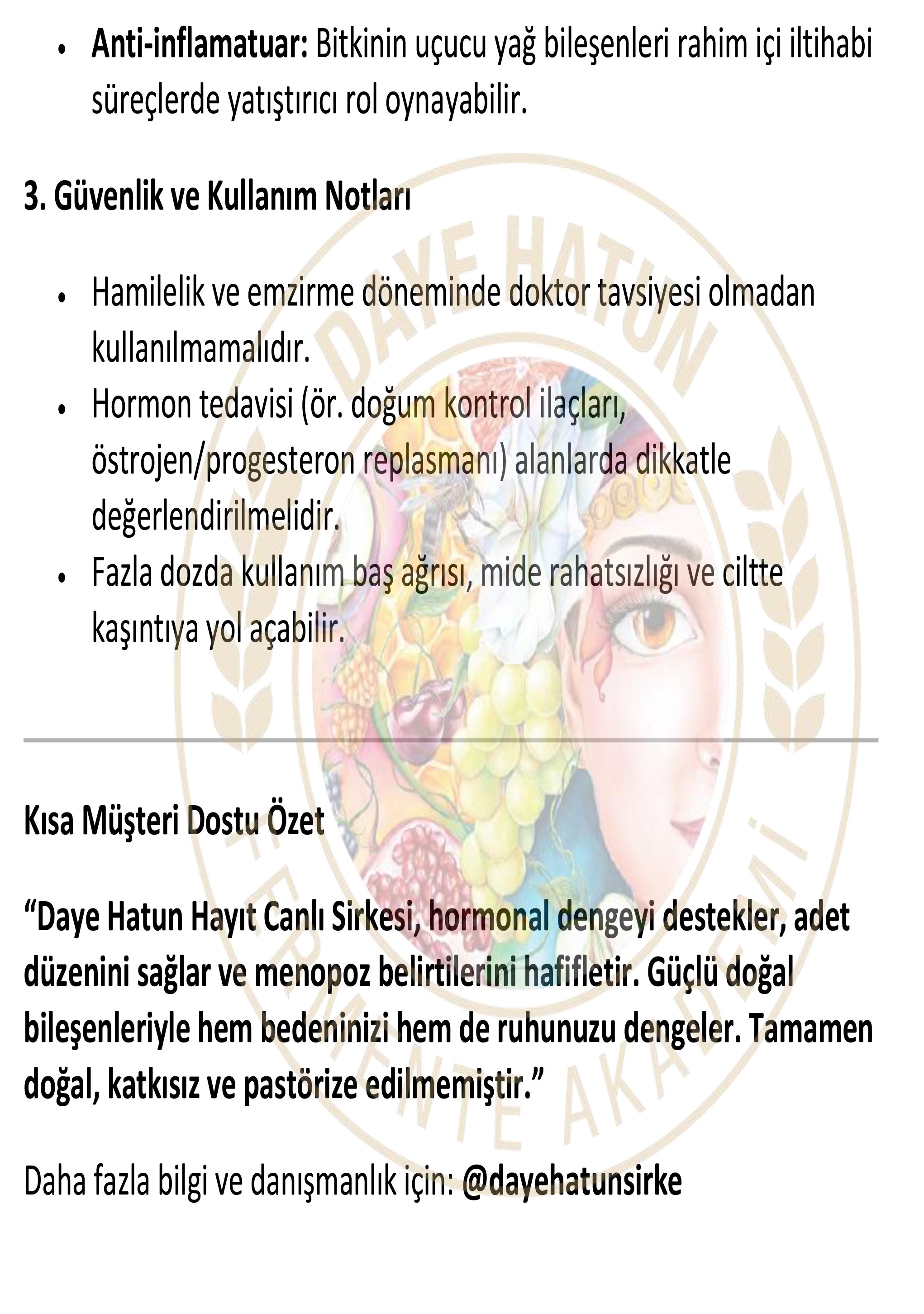 • "Daye Hatun" sirkelerini soğuk kullanmaya özen gösteriniz.
