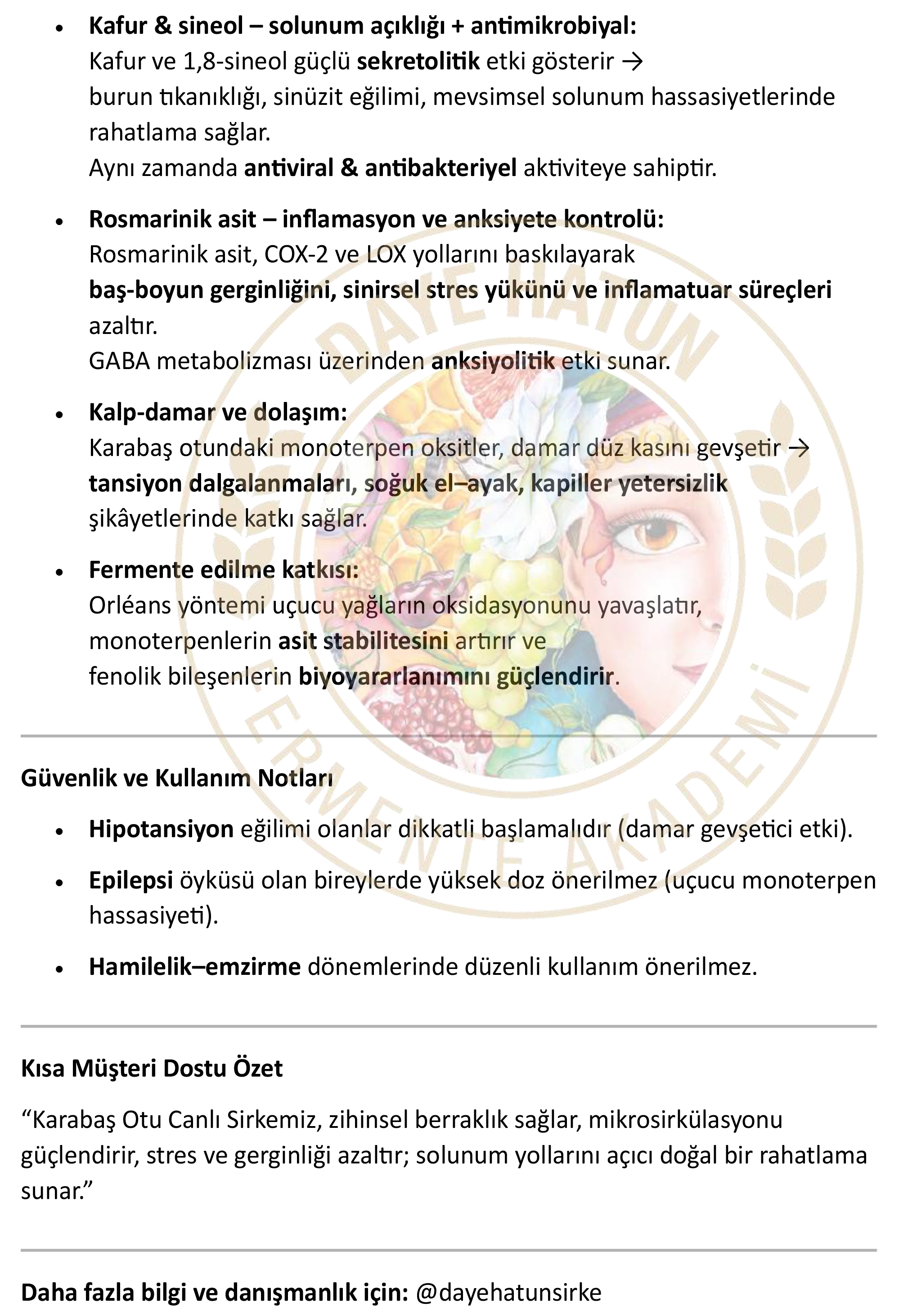 • "Daye Hatun" sirkelerini soğuk kullanmaya özen gösteriniz.