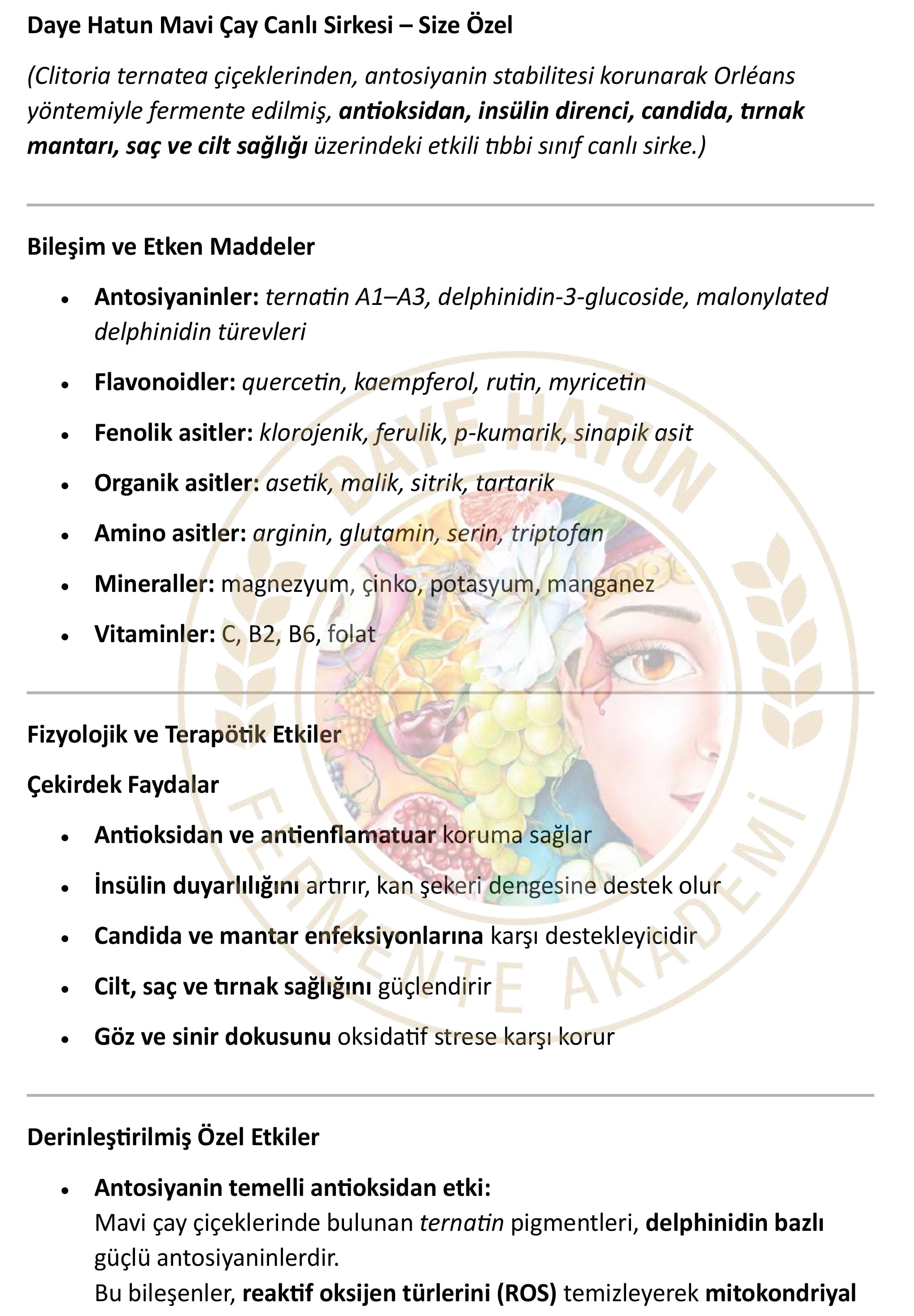 Üründen bağımsız olarak standardına uygun fermente edilmiş canlı sirkelerin çok çeşitli sağlık yararları olduğu bilimsel çalışmalarla ispatlanmış durumdadır. Bu temel faydaların yanında yapıldığı ürüne göre de farklı şifalarının tespitleri konusunda araştırmalar halen sürmektedir, Daye Hatun sirkeleri de “canlı sirke” olduğu için tüm bu faydaları ve çok daha fazlasını bünyesinde barındırmaktadır.