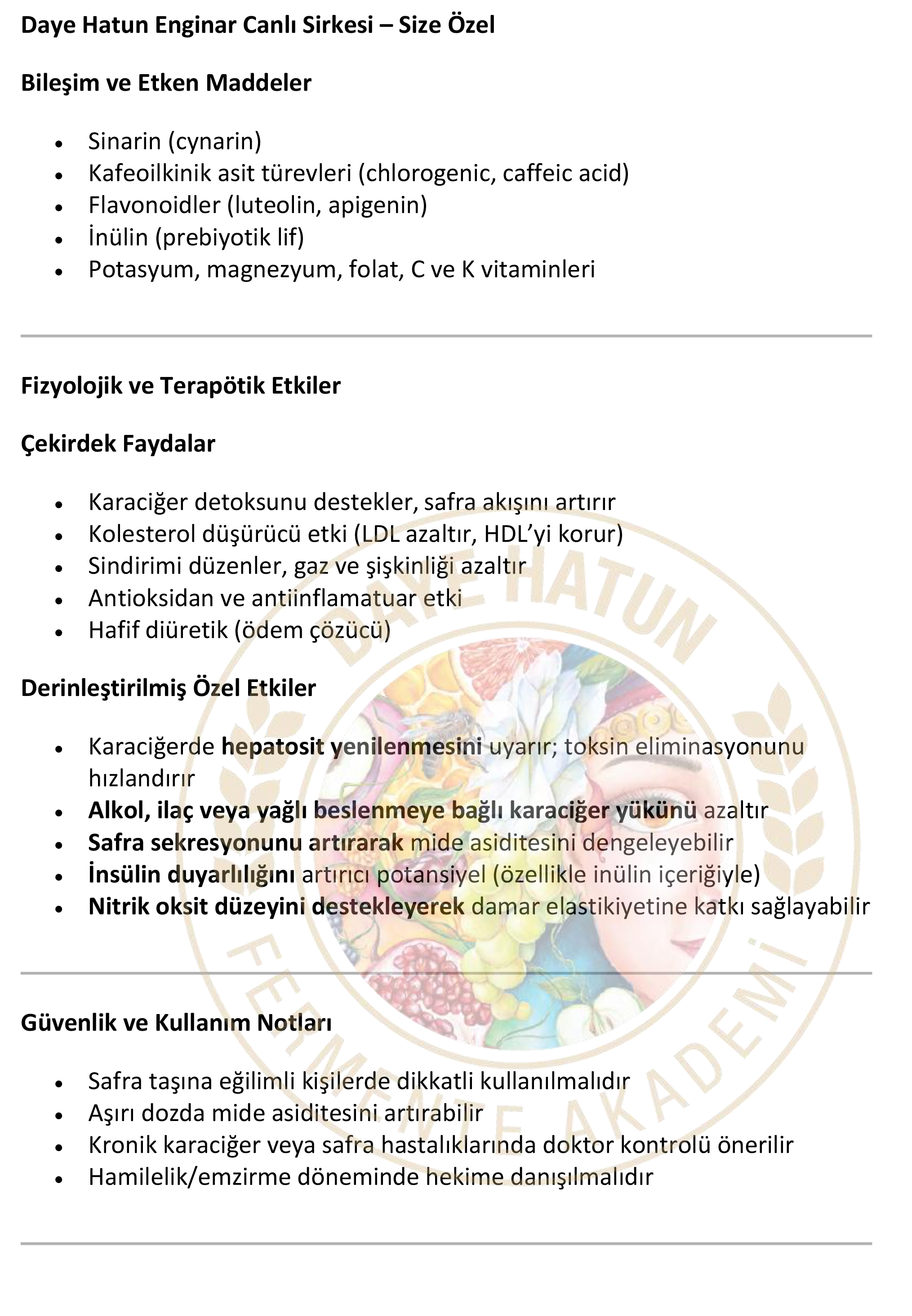 • "Daye Hatun" sirkelerini soğuk kullanmaya özen gösteriniz.